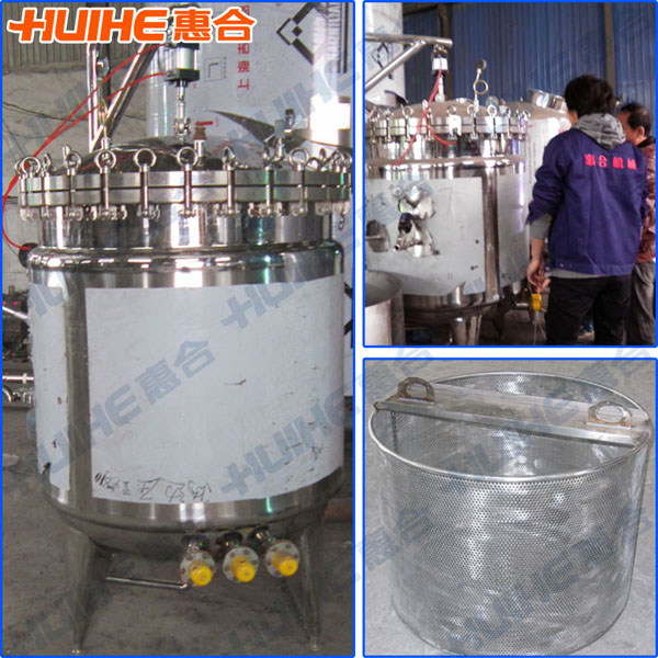 飲料中的應用:可以組成化糖系統(tǒng):即由水粉化合磨,夾層鍋,雙聯(lián)過濾器,超高溫瞬時滅菌機組成化糖系統(tǒng)。也可用于茶葉的浸取及其它物料的預煮,加熱,混合。